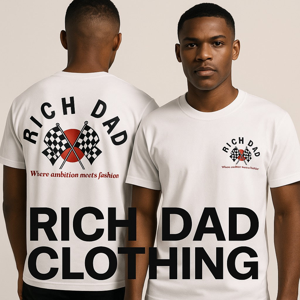 Shop allFuel your hustle in the Rich Dad Racing Tee- a streetwear essential mad for those who move with purpose. Featuring bold checkered flags and a signature red statement graphic, this tee speaks for your drive and ambition